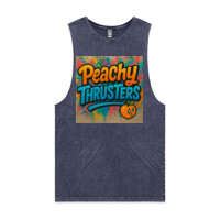 Sleeveless tank, raw armhole edges, stone wash finish with a worn look